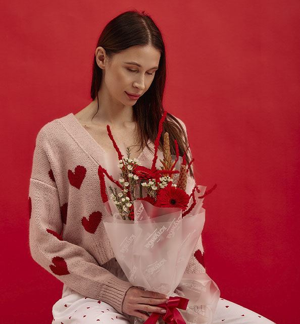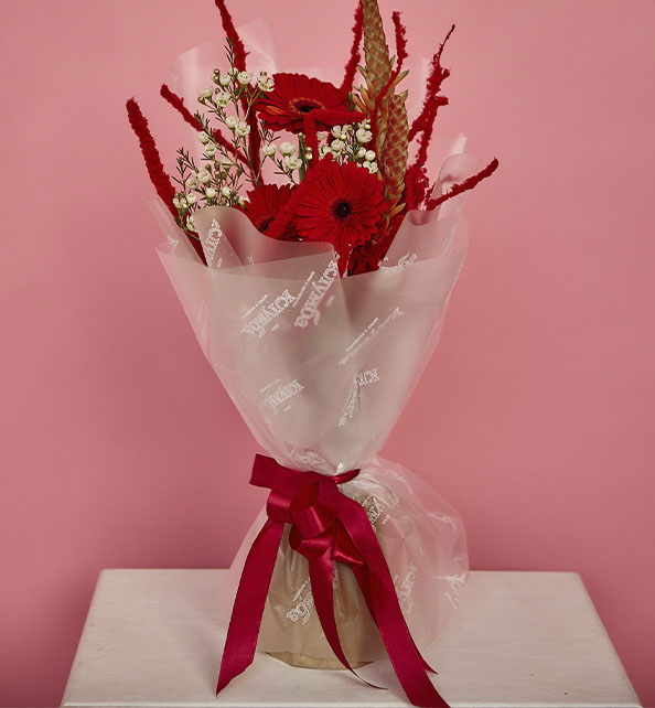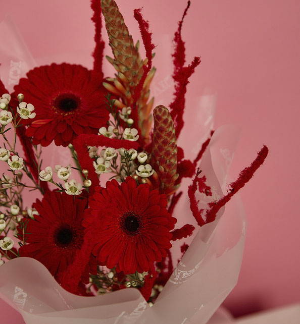 тильный и необычный букет с ярким характером. Сочные герберы задают композиции выразительный акцент и наполняют её энергией, а нежные веточки ваксфлауэра добавляют легкости и утончённости. Декоративный алоэ придаёт букету современное звучание и оригинальную текстуру, делая его по-настоящему запоминающимся. Такой букет станет эффектным подарком для человека с особым вкусом и подчеркнёт индивидуальность любого события.